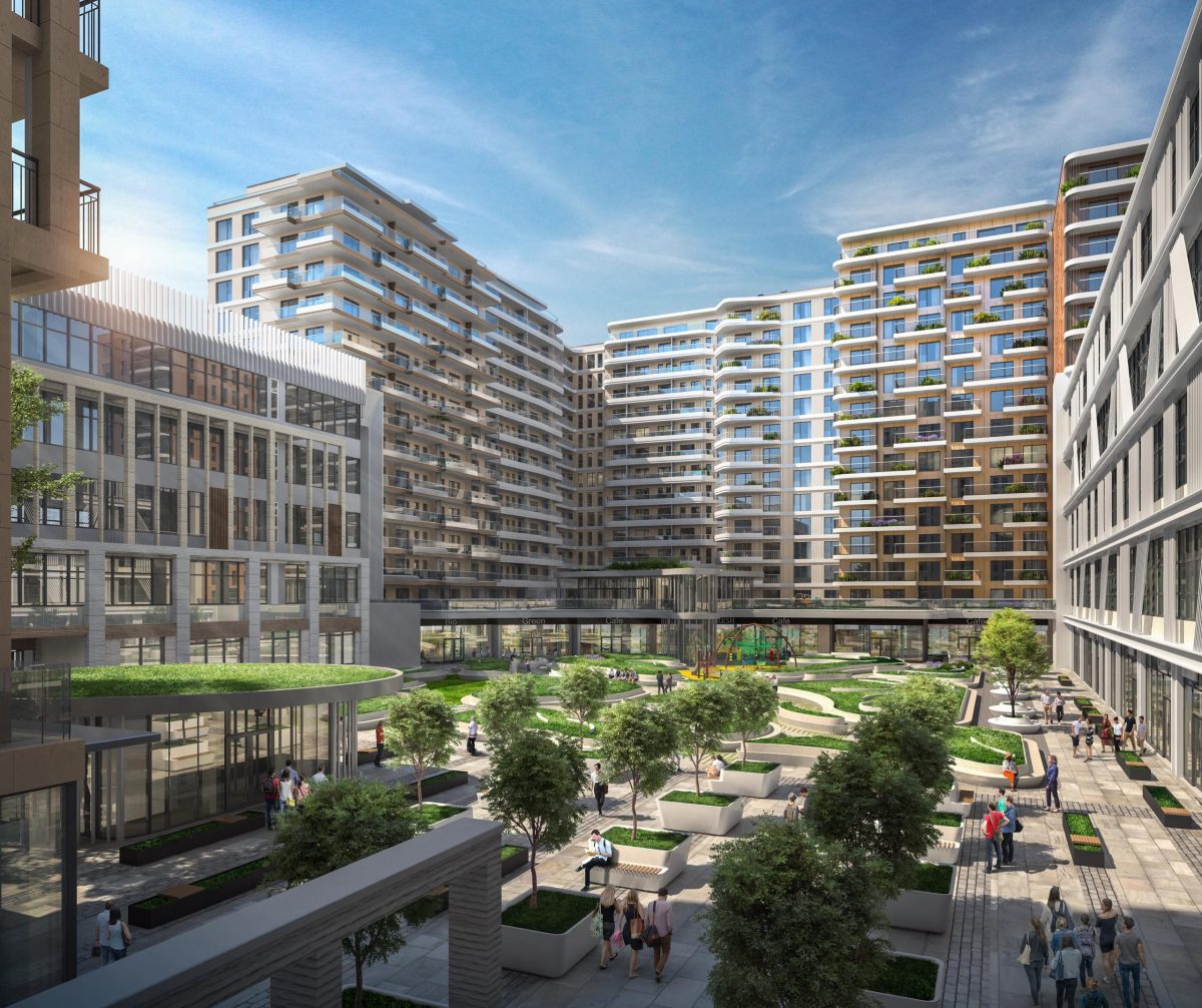 Das Herzstück von Vitosha Art ist der überdachte öffentliche Platz, der als grünes Herzstück des Komplexes dient. Er ist als verbindendes Element zwischen den verschiedenen Funktionen des Komplexes und den umliegenden Parks konzipiert und bereichert sowohl das Büro- als auch das Wohnumfeld.