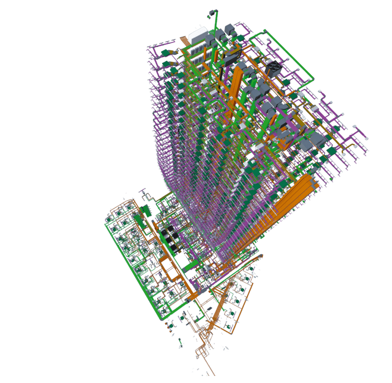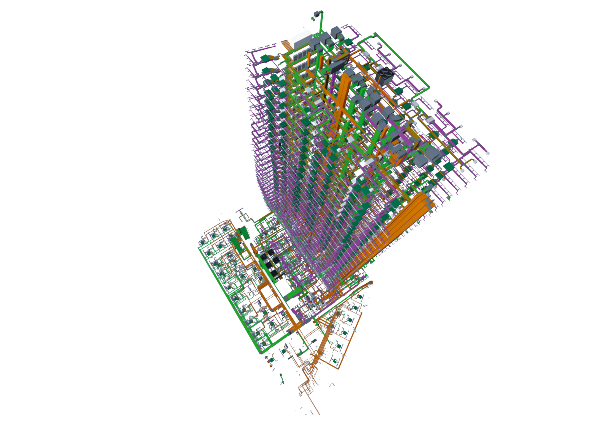 The building is equipped with a modern heating, ventilation, and air conditioning system that meets the diverse requirements of its various uses. Furthermore, the building is certified according to LEED V4 BD+C: NC standards, underscoring its commitment to environmentally friendly and resource-efficient construction.