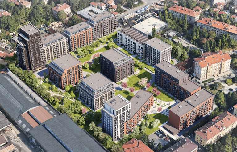 Situated on a plot of 27,644 m², the NOVE HOMES complex comprises 14 buildings, offering a total of 556 residential units and 10 commercial spaces, with an overground built-up area exceeding 58,000 m².